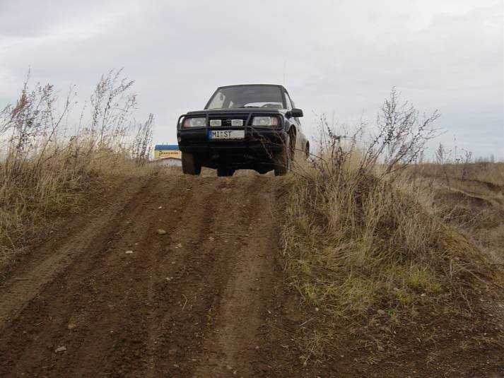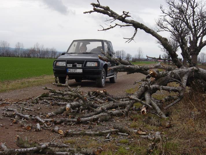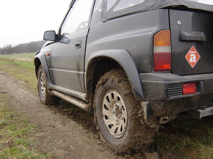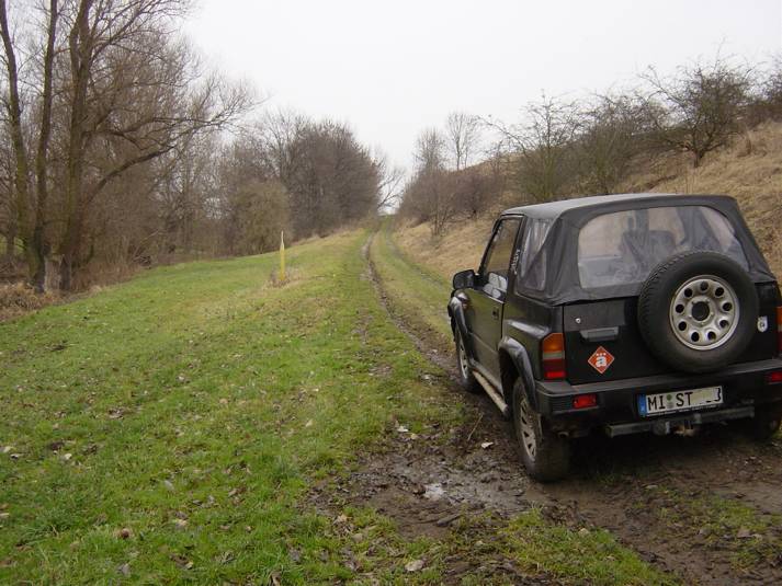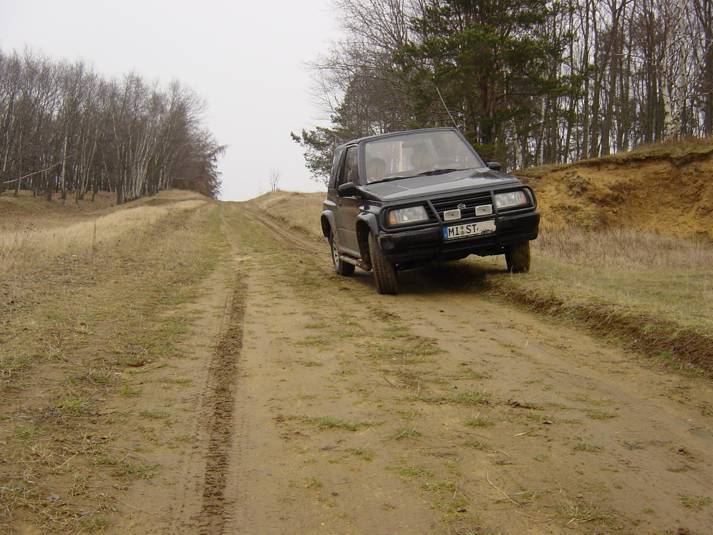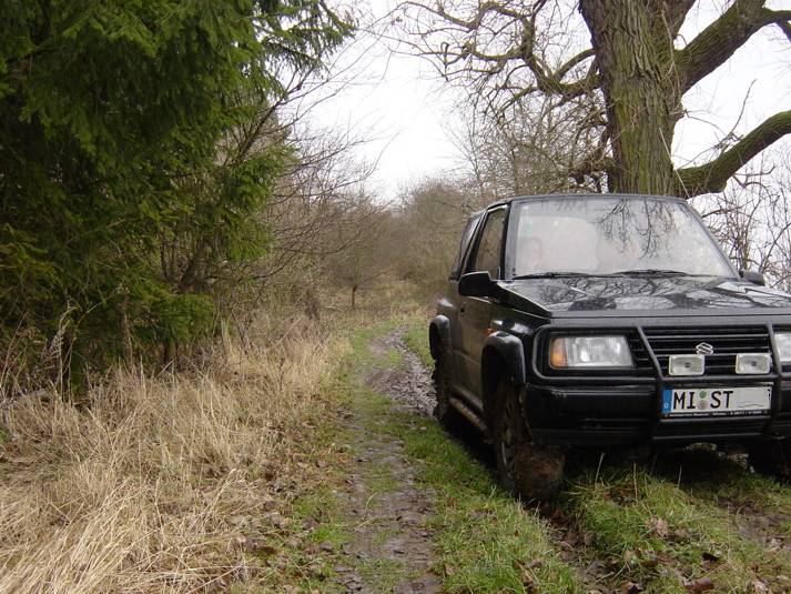 Im Dezember machen wir noch einen letzten kleinen Ausflug abseits der Straße. Wir finden ein paar schöne Feldwege und Zeit für einen Abstecher an den Harzring in Reinstedt. Laut der Zeitschrift Off Road 01/05 kann man dort ein wenig im Gelände toben. Zum Zeitpunkt unseres Besuches ist niemand an der Rezeption, aber das Areal ist offen. Wir drehen eine kleine Runde und stellen fest, dass sich ein Besuch lohnt. Hierher kommen wir später sicher nochmals wieder. Auf dem Gelände einer alten Kiesgrube befindet sich eine großzügige Outdoorkartbahn. Im Sommer finden hier auch Supermotorennen und ein 24 Stunden Moppedrennen statt. Für den Offroader findet man Auf- und Abfahrten, ein paar Schlammlöcher und andere Spielereien. Der Ursprung sieht nach Enduro aus - aber auch 4 WD gibt es viel zu entdecken. Auf dem weiteren Weg merken wir auch noch, dass unsere Winterreifen bei richtigem Schlamm nicht die beste Wahl sind. Trotzdem wühlt sich der Kleine ordentlich durch. Faszinierend ist die bessere Verschränkung mit den schmalen Reifen - die Räder tauchen voll in den Radhäusern ab. Jetzt gibt es drei Alternativen - entweder auch im Sommer bei den schmalen Reifen bleiben (sieht aber bescheiden aus und ich bräuchte neue Felgen), breiten Reifen und leichte Einschränkungen hinnehmen oder doch ein Bodylift. |