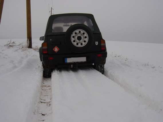 Bei strahlendem Sonnesnchein und einer ordentliche Portion Schnee haben wir die Schneetauglichkeit des Vitara getestet. Ernüchternd war die erste Lektion: Ohne 4 WD geht bei der leichten Hinterachse selbst mit Winterreifen kaum etwas, ausser man will sich im Driften üben. Lektion zwei bestätigte eine andere alte Weissheit: Ohne ausreichend Bodenfreiheit ist alles nichts. So kam der Klappspaten zu seinem Recht und ich durfte den Vitara zweimal wieder ausbuddeln. Wenn der Unterbodeen erst auf dem Schnee aufliegt ist Schluss mit Vortrieb. Nicht immmer reicht der Schwung, und nicht überall ist Schwung angebracht!. Aber trotz der Mehrarbeit hat die Ausfahrt richtig Spass gemacht :o) |