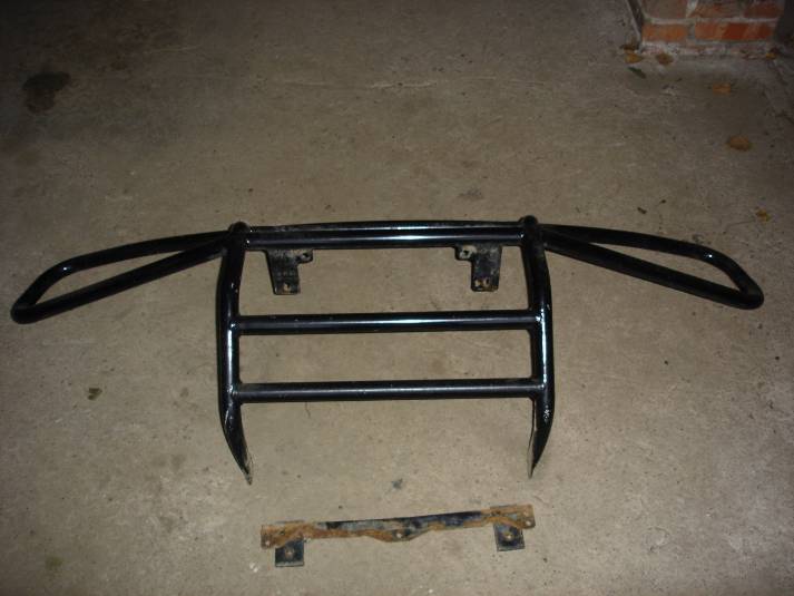 Beim Durchforsten der Garage ist mir mein Rammschutz in die Hände gefallen. Nach der Montage des Bodylifts brauche ich den nicht mehr - er passt nicht mehr dran und ein Umbau ist mir eigendlich zu aufwendig. Wer Interesse hat den Frontschutzbügel für kleines Geld abzufassen und in Minden abholen möchte, kann sich bei mir melden (2011: nicht mehr aktuell, da verkauft). Angeblich handelt es sich um einen originalen Suzuki Frontschutzbügel der Firma Mefro. Papiere dazu habe ich - nur habe ich auf dem Bügel keine Kennzeichnung gefunden. |