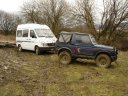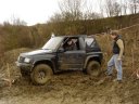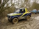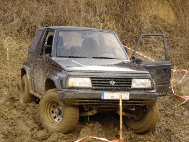 Kleine Suzukis waren reichlich vertreten, Vitaras haben nicht aktiv ins Geschehen eingegriffen ;o) Beide "Jagdwagentreiber" aus dem VFF waren als Streckenposten aktiv und haben nach der Veranstaltung die Strecke noch ein wenig unsicher gemacht. Trial ist für unseren kleinen fast serienmäßigen Japaner nicht das richtige - aber zum ein wenig im Dreck spielen hat es auch gereicht. |