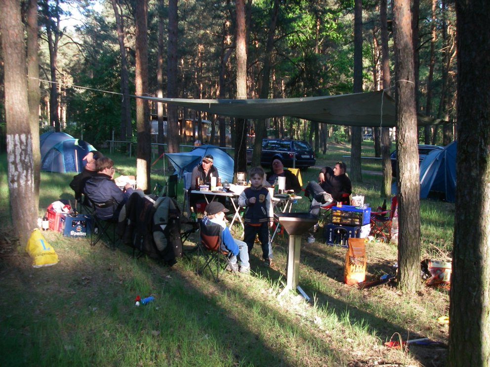 Mai 2012: Dannigkow liegt verschlafen wie eh und je im Magdeburger Flutgebiet und die Anzahl der Camper hat sich auf dem historischen Jahrestief eingepegelt. Nur ein paar Helden der EMxxA halten die Fahne hoch. Na ja – nicht alle, denn der härteste Camper hat sich ja zum Hotelbewohner entwickelt… Dabei gibt es demnächst gar keinen Grund mehr nicht hier zu zelten, denn große Investitionen in den Sanitärbereich künden von einer glanzvollen Zukunft. Es ist frisch am Abend, aber trotz der späten Anreise finden wir ausreichend Zeit für mehr oder weniger tiefsinnige Gespräche. Dank Bernies Grill und einer ausreichenden Getränkereserve gibt es auch versorgungstechnisch nichts auszusetzen. Der Männertag verläuft in gewohnter Qualität: In Ruhe aufstehen, Grillen, kein Bier vorm Mittag, Softeis am wiedereröffneten Waldcafe "Am Tiefensee", ein paar motivierten Reitern (das mit Reiter(innen) im Restaurant habe ich irgendwie anders in Erinnerung), Bouleturnier, wieder Grillen, Apfelkorn und Laberei – also alles Bestens. Freitag früh brechen alle wieder auf.