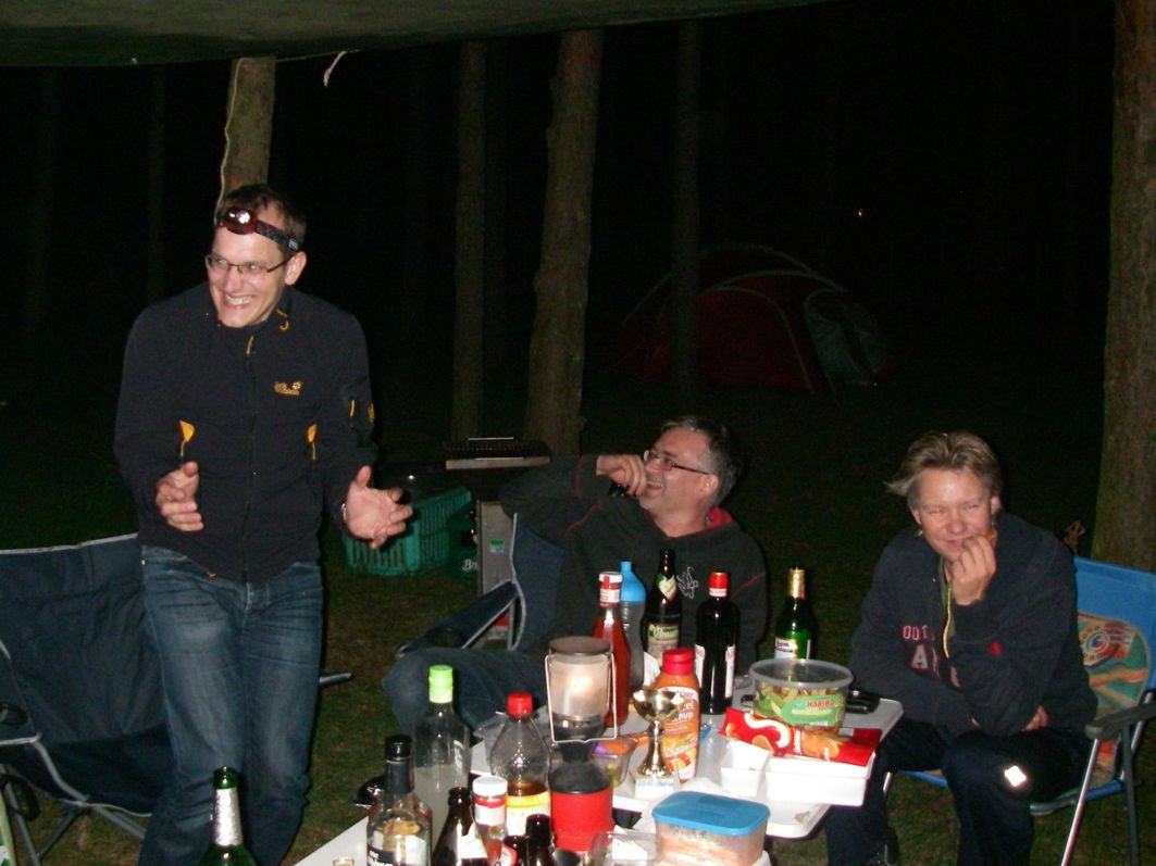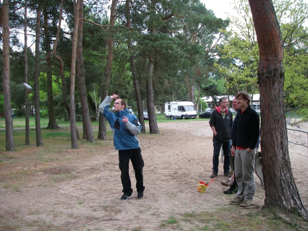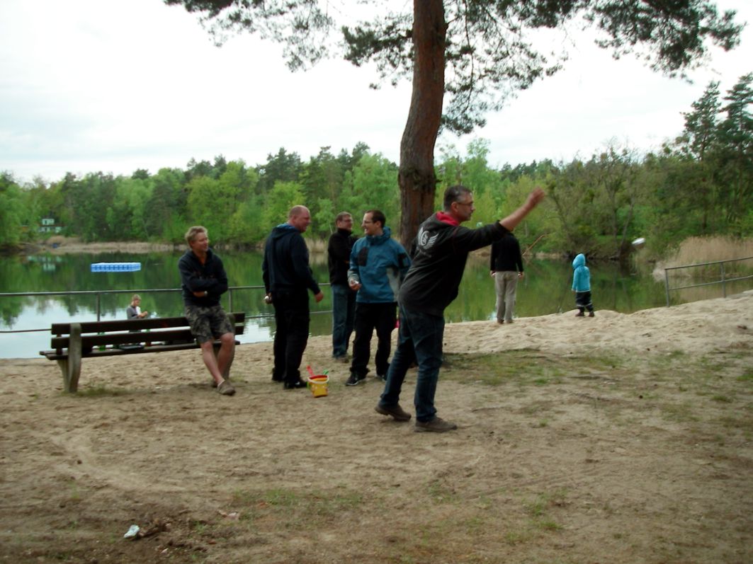 Mai 2013: Unser klassisches Ausflugsziel zum Männertag hat sich entscheidend weiterentwickelt: Wir haben es zwar schon immer geahnt, aber auf der anderen Seite des Sanitärtrakts herrschen ausgesprochen moderne und komfortable Verhältnisse. Alles ist neu – aber Duschen müssen wir deshalb trotzdem nicht. Das gemeine Publikum hat diese Weiterentwicklung noch nicht wirklich mitbekommen – sprich wir sind als Zeltler praktisch allein wie immer. Ansonsten ist eigentlich alles wie immer. Am Mittwochabend reisen alle (bis auf Wolzow) in Ruhe an und wir widmen uns mehr oder weniger tiefsinnigen Gesprächen. Bernies Grill liefert konstant gute Ergebnisse und das ein oder andere Kaltgetränk wird bei den annehmbaren Temperaturen vernichtet. „Erstaunlicherweise“ findet der gute Apfelkorn nicht wirklich gefallen. Am Donnerstag wird diese anstrengende Lebensweise fortgesetzt und mit dem obligatorischen Boule Turnier (mit internationaler Beteiligung und ausländischem Sieger) und einem Eis - Besuch am Waldcafe „Am Tiefensee“ (leicht renoviert) fortgesetzt. Im Laufe des Freitagvormittags müssen wir alle wieder aufbrechen. |