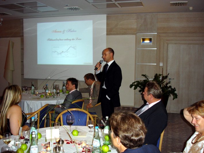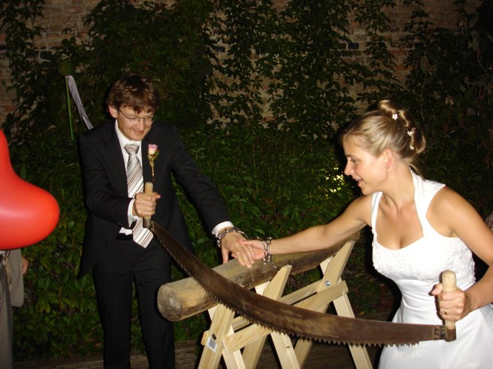 | Am 12.08.2006 haben sich Anna und Heiko getraut - na ehrlicherweise schon ein paar Tage früher. An diesem sonnigen Samstag war zum großen Fest in die Kirche in Berlin und anschließend zur Feier Potsdam eingeladen. Nach der kirchlichen Trauung, die für uns eine neue Erfahrung war, ging es zum ersten Gang in das Gemeindehaus. Bei der Feier im Hotel konnten wir uns dann richtig verausgaben ;o) |