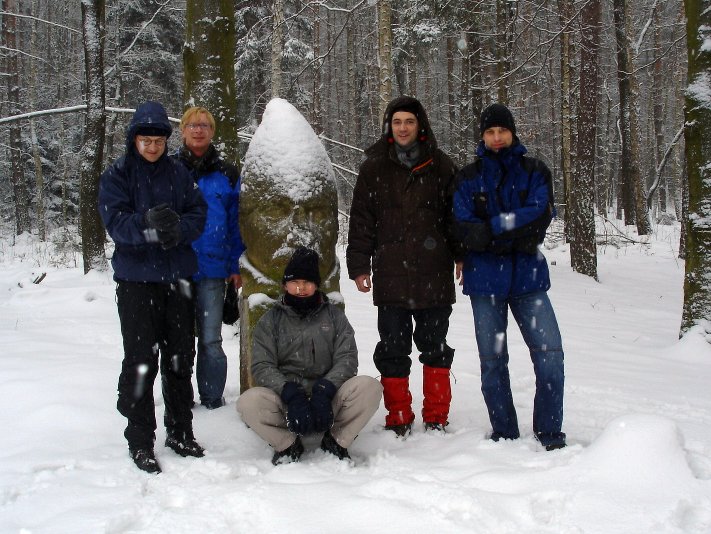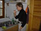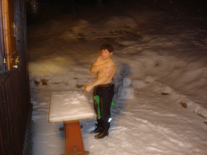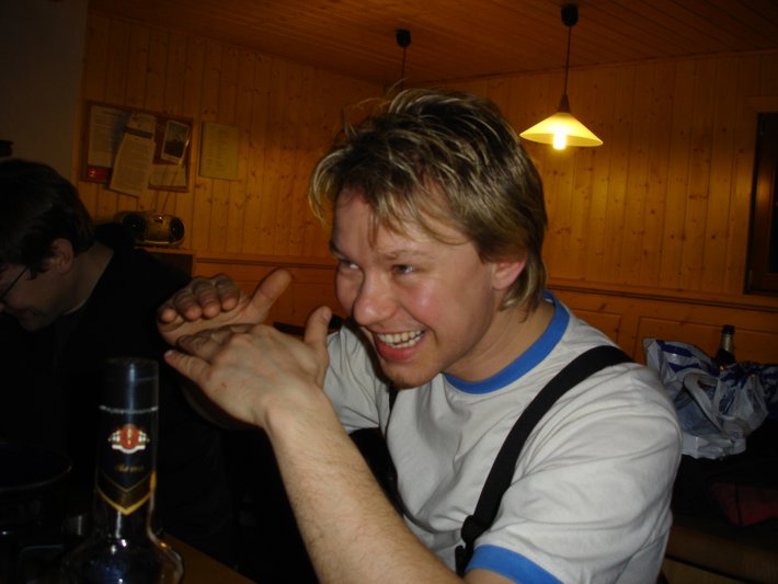 | Anfang Februar 2006 ging es zum Winterhausen ins Sächsische Elbsandsteingebirge nach Krippen. Dank Udos Unterstützung konnten wir für dieses Wochenende dekadent und komfortabel in der Hütte des ASD Dresden nächtigen. Mit elektrisch Licht und Kachelofen waren wir mit unserer Winterzeltausrüstung völlig overdressed. Nach wenigstens war der Schlafsaal im Obergeschoss unbeheizt und das Wasser musste an einer Quelle unten im Ort geholt werden ;o) |