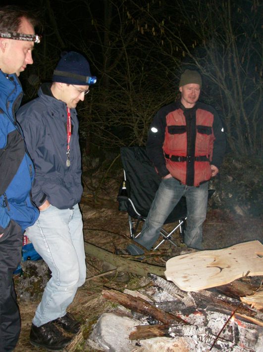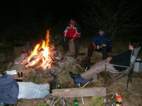 | Gegen 20:00 Uhr traf Matze als Erster ein und bereitete Platz und Feuer vor. Zweite waren die OWL'er und der Hannoveraner, vor der Bulette und der Dresdner Fraktion. Der Abend zog sich bei ausgebiegen kulturell angehauchten Diskussionen bis fast in den Morgen. Am Samstag ging es per Pedes über den Blauen See und die Reste von Kyrill zu Werners Eltern. Leider hatten wir keinen Erfolg, haben aber dafür jetzt seine Adresse. Im Deutschen Haus haben wir uns den Bauch vollgeschlagen. Dank ausreichend Feuerholz musste am Abend keiner frieren. Der Glühwein reichte und dank unermüdlichem Einsatz war auch dieses mal am nächsten Morgen noch ausreichend Glut vorhanden. |