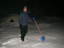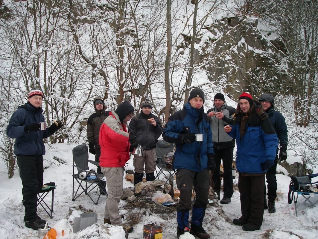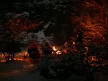 | Am letzten Januarwochenende 2013 ging es mit „den alten Männern“ (O-Ton von Michas Sohnemann) zum traditionellen Winterzelten. Der Wettergott (alternativ auch der Wetterfrosch) meinte es gut mit uns, denn dieses Mal war die Welt bei knackigen zweistelligen Minustemperaturen in pulvrigen Schnee gehüllt. Nach 22 Uhr waren wir dann endlich komplett und konnte uns der weiteren inneren Durchwärmung widmen. Als bayrische Spezialität gab es Gulasch mit Spätzle und Preiselbeeren – zu der späten Stunde waren viele Bäuche allerdings schon gut gefüllt. |