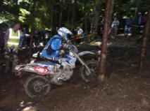 Offiziell nicht als Höhepunkt ausgewiesen, aber dank eines Interviews mit Markus Kehr und im Gespräch mit anderen Zuschauern publik geworden, erwies sich ein Wäldchen bei Witzschdorf als besonders lohnender Tipp. So ließen wir den Teufelsberg aus, der sowieso entschärft sein sollte. Zwar konnte man als Zuschauer in Witzschdorf schwer parken, aber die Enduroaktion an der felsigen Auffahrt in dem kleinen Wäldchen war vom feinsten. Während die Einen ohne jede Hilfe nach oben trialten, kamen Andere nur mit der geballten Hilfe der Streckenposten nach oben. Alles war gut organisiert und im richtigen Moment wurde die Streckenführung geändert. Die Euphorie der Zuschauer trieb die Fahrer nach oben – und insbesondere die südländischen Fahrer ließen sich oben kräftig feiern. |