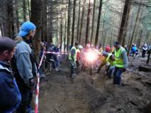 In der nächsten Nacht regnete es! Das der erzgebirgsche Boden dagegen etwas resistent ist, zeigte der als interessante Stele ausgewiesene Hang in der Nähe von Weißbach. Es braucht schon ein wenig mehr Wasser, denn nach der Durchfahrt der ersten Fahrer begann der Boden schon wieder leicht zu stauben. So war die Auffahrt zwar knifflig – aber grundsätzlich machbar. |