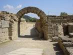Vor dem Eintreffen mehrerer Reisebusse nutzen wir die Gelegenheit die Außenanlagen von Olympia in Ruhe zu besichtigen. Als eine optimale Trainings- und Wettkampfstätte angelegt, kann man sich noch heute den Trubel auf dem Gelände vorstellen. Allerdings ist es kaum zu glauben, dass in dem Stadium rund 40 Tausend Menschen Platz gehabt haben sollen. Gute Beschreibungen - auch in Deutsch - lassen die belebte Sportstätte vor dem geistigen Auge entstehen. Die Kür, den Besuch im archäologischen Museum, lassen wir zugunsten eines ausgiebigen Mahls in der „Innenstadt“ entfallen. |