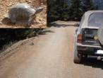 Nach einem lustigen Tankaufenthalt (Tankwart: „Ich bin der Bruder aus Amerika und nur für dieses Wochenende hier um auszuhelfen....“) und der Besichtigung des Athena Heiligtums in Delphi geht es auf einer „Gravelroad“ durch den Parnapass – Nationalpark in Richtung Westküste. Interessant sind die kleinen Testgelände verschiedener 4x4 Hersteller direkt an der Straße – dabei gibt es doch im Hinterland richtige Strecken. |