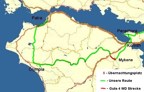 Auf den nächsten Kilometern, die sich im nachhinein Mangels feinerer Landkarte als sehr schöner Umweg entpuppen, sehen wir Eichhörnchen, Schildkröten (nach dem Atemgeräusch Darth Wader) Eisenerzminen und einen staubigen Wegbelag wie Schnee. Auf Asphalt geht es über Karpenisi und teils kleiner Sträßchen am Tartarnas Stausee vorbei zum Campingplatz Staris Beach in Katafowka. Die Vielzahl von kleinen Straßen und Feldwegen muss leider ungenutzt bleiben. |