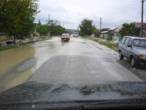 Bei Abrud verwandelt sich die durch den starken Dauerregen schon glatte Fahrbahn in eine Eisbahn. Das Gemisch aus Wasser, Abrieb, Öl und dem eigenartigen Straßenbelag lässt unsere Hinterräder auf gerader Strecke durchdrehen. Langsam und wie auf rohen Eiern zu fahren ist eine gute Idee, denn wenig später müssen die ersten Schnelleren aus dem Graben geborgen werden. |
