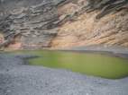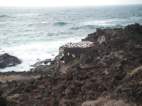 Unweit von La Santa liegt direkt am Meer ein weiterer erloschener Vulkan. Bei der kleinen und natürlich windigen Wanderung um den Montana Bermeja finden wir nicht nur faszinierende Gesteinsformationen, sondern auch eine Art Grotte für Aussteiger. Die Bewohner sind gerade nicht zu Hause, aber ein paar Wasserflaschen und eine Feuerstelle zeugen von einer Nutzung. Auch hierher verirren sich einzelne Sportler von der Urbanizacion La Santa Sport und sind verblüfft hier ein paar Wanderer, also sich eher langsam bewegende Leute, zu treffen. Nach der Bewegung auf zwei Beinen geht es weiter in 4WD L. Über spitze Steine kriechen wir durch ein Gesteinsfeld zum Plaja del Sol und finden uns irgendwann nach ein paar Kilometer Asphalt und einer Erdpiste durch ein gewaltiges Lavafeld am Playa de la Madera wieder. Der romantische Sonnenuntergang klappt zwar wegen vieler Wolken nicht ganz, aber ideal wäre der Platz schon. Nur ganz einsam ist es hier nicht, denn Angler mit Badelatschen, großen Kühltaschen und noch viel größeren Angeln versuchen zwischen den spitzen Steinen den besten Platz zum Fischen zu finden. |