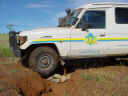 Nach einem guten Frühstück, der Erkundungen alter Minen einem Bad in der Swapit Gorge geht die Fahrt nach Osten. Irgendwann biegt eine kleiner Piste nach links zur Flora Valley Station ab. Der Weg führt am Farmhaus vorbei und ein Gewirr an Wegen verzweigt sich im Nichts. Wir nehmen immer den breitesten, aber zusehends werden die Spuren schmaler. Der Grader ist hier wohl länger nicht lang gekommen, bald kann man den Weg im hohen Gras und Buschwerk nur noch erahnen. In der nächsten Stunde geht es 4WD like nur langsam voran. Ab und zu treffen wir ein paar Wildtiere oder müssen uns mit den Tücken des Weges auseinandersetzen. Es ist Herbst und damit alles easy - bei Regen ist die Piste wohl nicht befahrbar. |