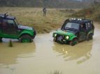 Am 11.12.2005 hatten Sven und Kollegen von www.sk4x4sports.de zu einer kleinen Roadbooktour und freiem Fahren bzw. einem Trail eingeladen. Für einen sonst so trüben Tag genau die richtige Aufmunterung. Vom gemeinsamen Treffpunkt ging es im Fünfminuten - Abstand über meist kleinere Strassen und ein paar Feldwege zu einer Kiesgrube. Die Fahrt zum Ziel war etwas leicht, aber dafür konnten wir uns anschließend in der Grube austoben. Neben etlichen Bergeaktionen, nassen Fussräumen, leichten äußerlichen Verschmutzungen (auch an weissen Vitaras) , sportzenden Jeeps und anderen Kleinigkeiten gab es eigendlich nichts spektakuläres zu vermelden ..... |