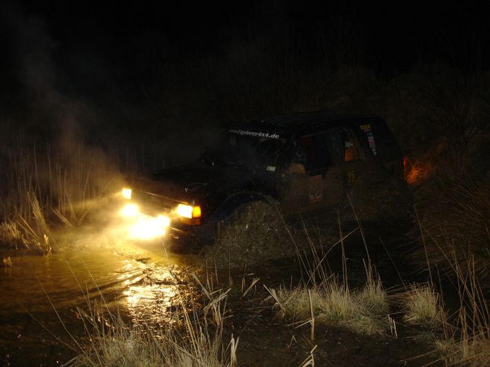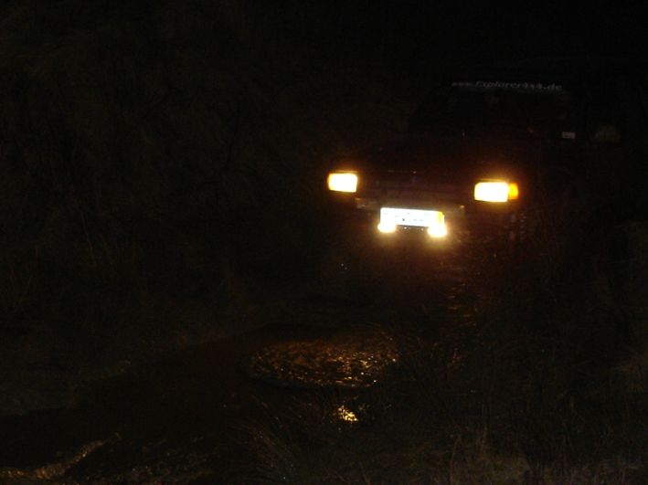 Am 16. März hatte Götze 4x4 zur Harzer Nachttrophy eingeladen. Nach einem standesgemäßen Abendessen in einer gemütlichen Harzer Gaststätte machte sich unser kleiner Konvoi nach einem Radsatzwechsel auf in Richtung Berge. Von nun an hieß es Spaß im Gelände. Auf und vorallem ab führten uns die "Pisten" und obwohl auf Grund neuer Sturmschäden nicht jeder Weg befahrbar war, kam eigentlich jeder auf seine Kosten, denn zur Not verzichte man halt auf den Allrad. Ernste Schäden gab es nicht wirklich, ob Lichtmaschine, Kardanwelle oder Lenkschubstange - alle Autos ließen sich wieder gangbar machen. Selbst die Begegnung der Dritten Art mitten in der Nacht verlief genial problemlos. Rund 12 Stunden später klang beim gemütlichen Frühstük die Trophy ohne Wettbewerbsstreß aus. Das schreit nach Wiederholung! |