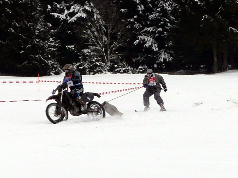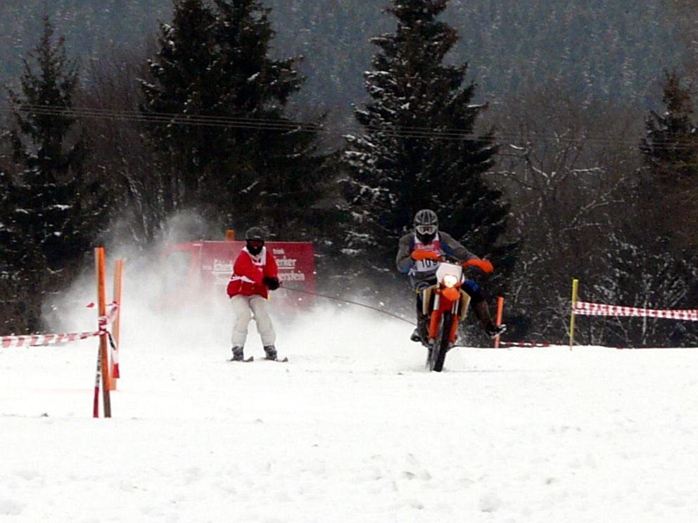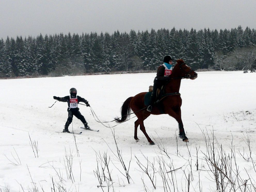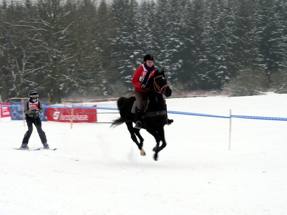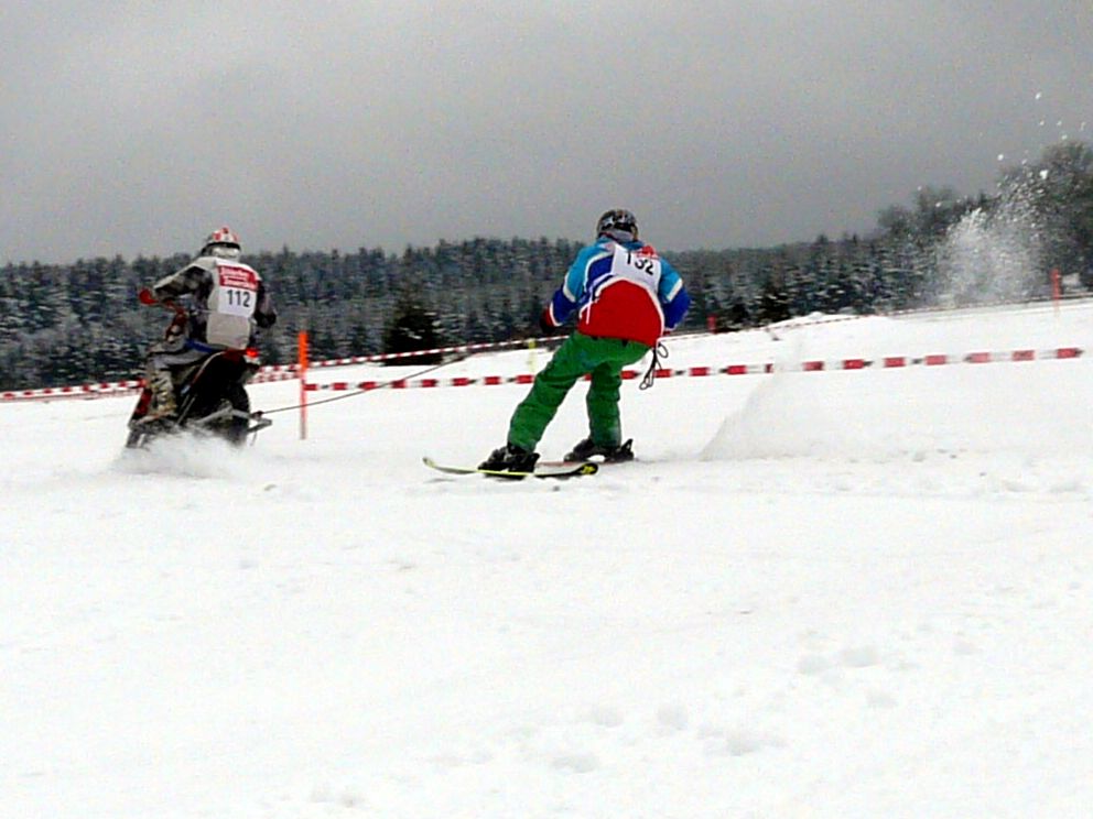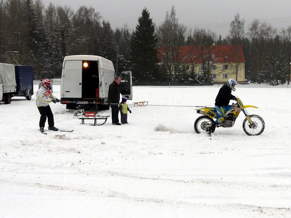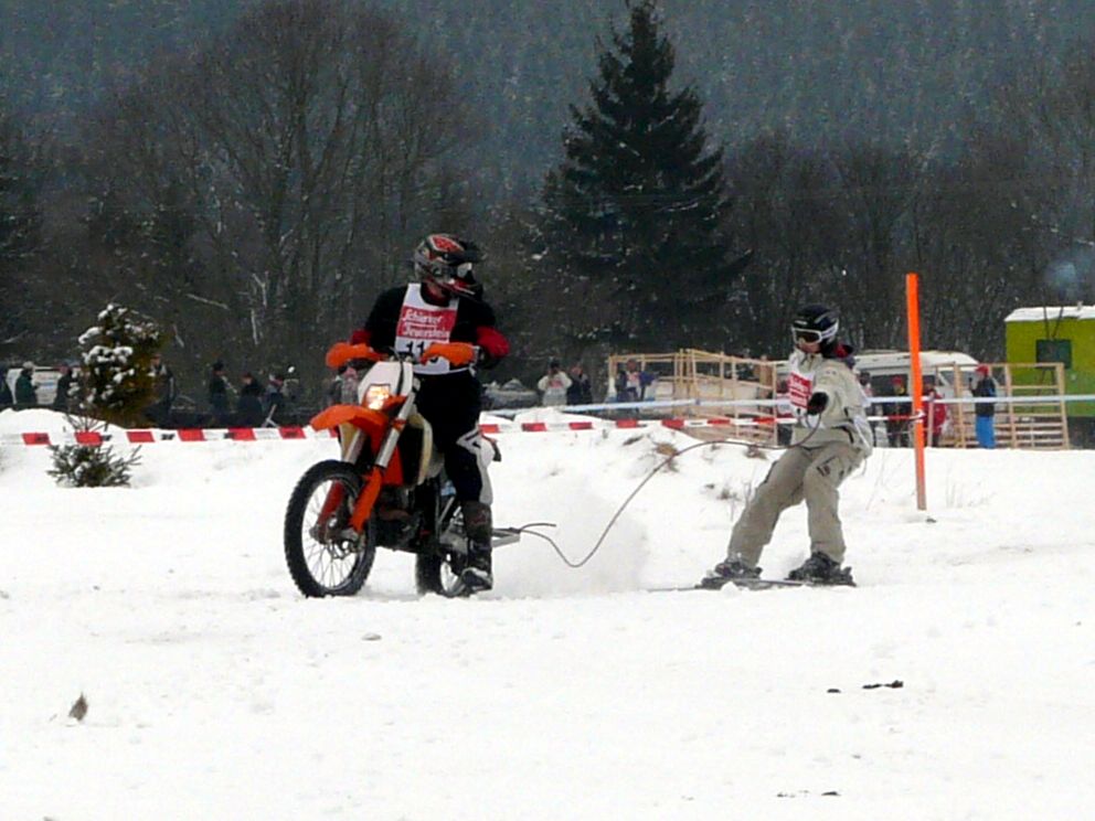 Ende Januar 2012 fand in Elend im Harz das traditionelle Skijöring mit Pferd, Motorrad, Quad, Motorschlitten und Geländewagen statt. Das Wetter war endlich winterlich mit ausreichend Schnee und dank Präparation mit der Pistenraupe das gesamte Gelände auch für uns Zuschauer gut begehbar. |