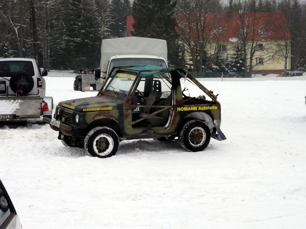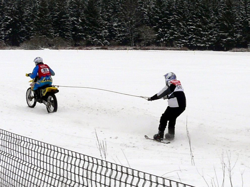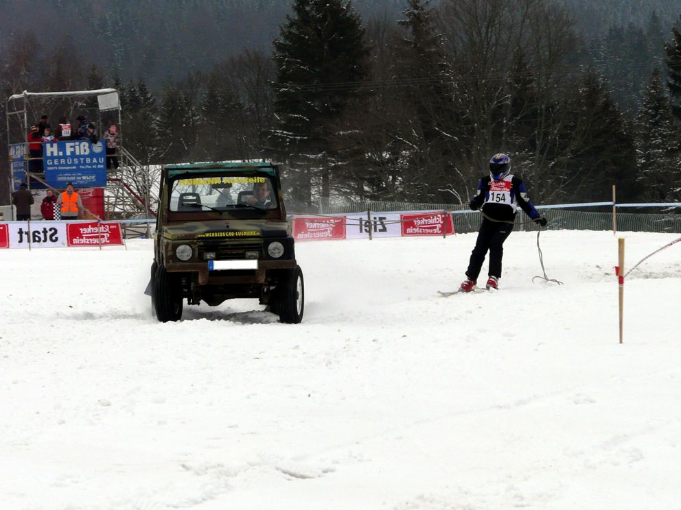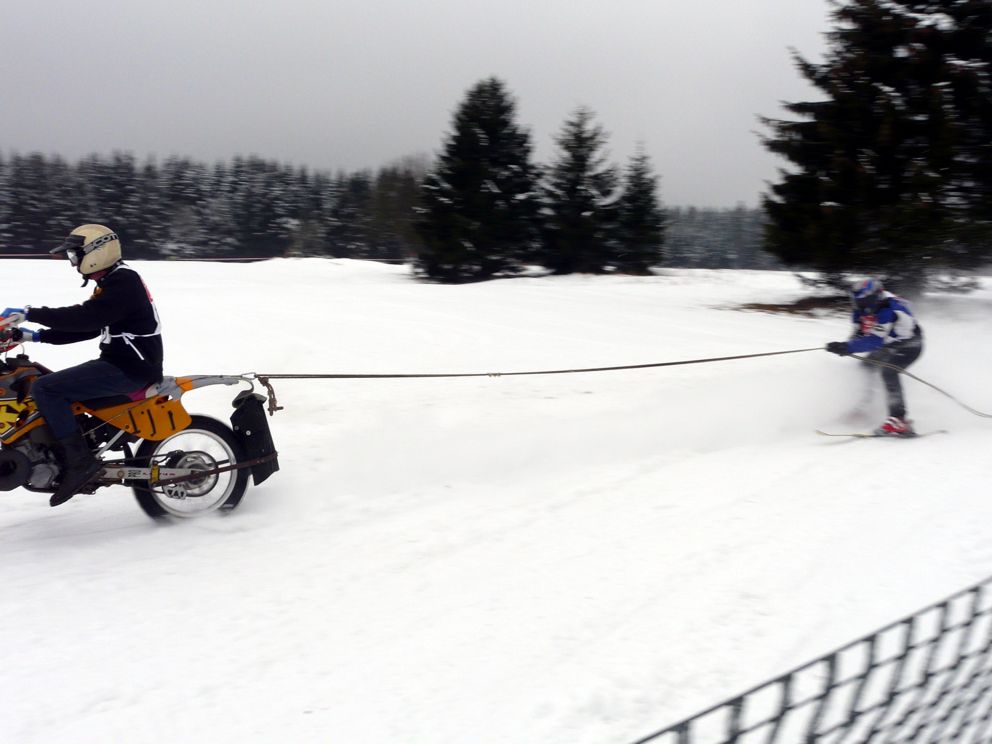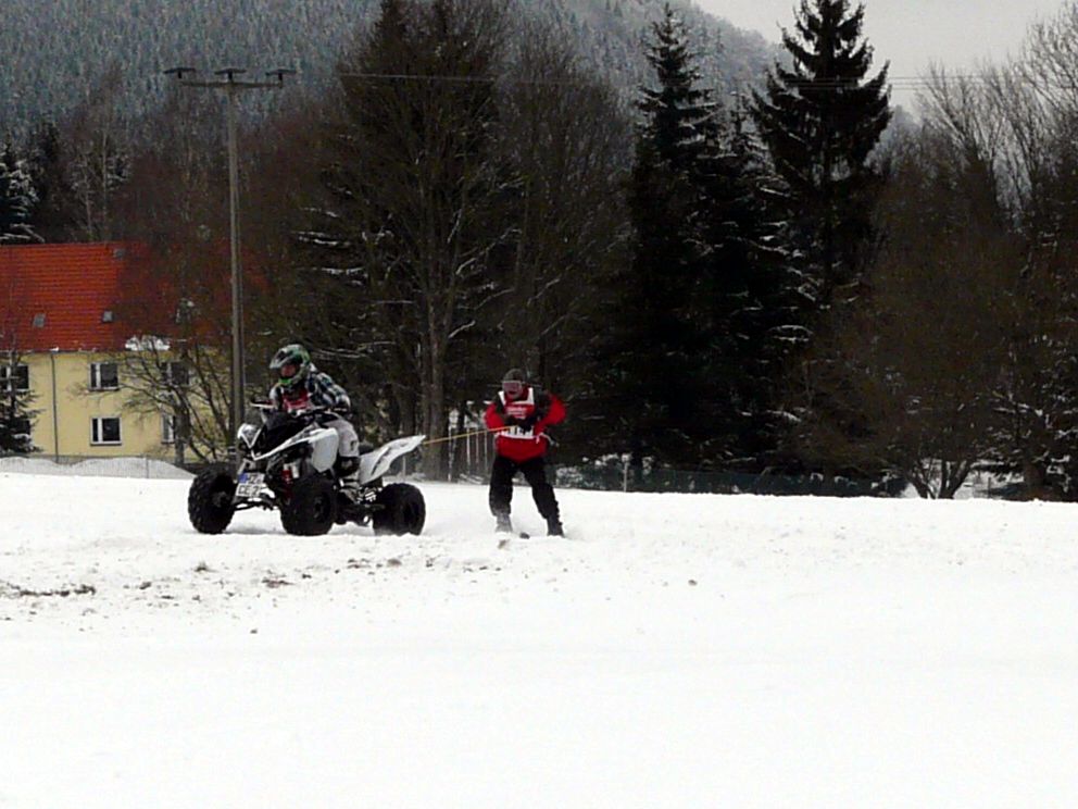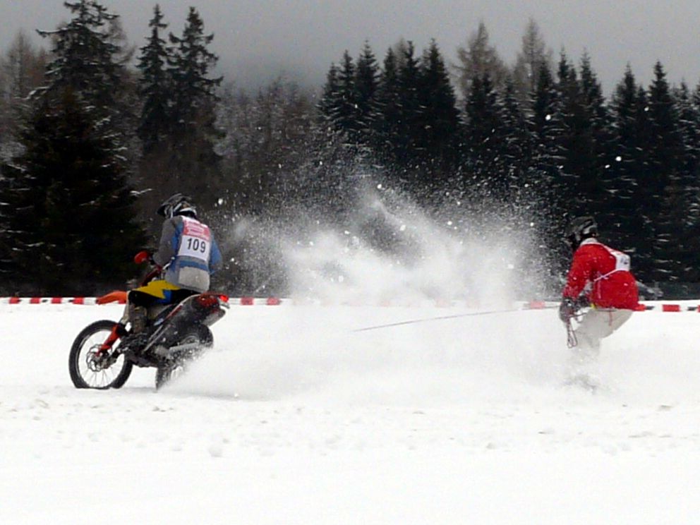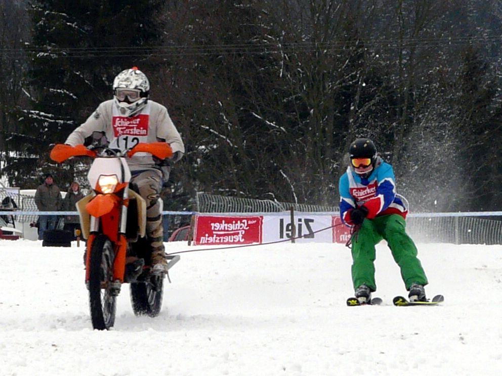 Ende Januar 2012 fand in Elend im Harz das traditionelle Skijöring mit Pferd, Motorrad, Quad, Motorschlitten und Geländewagen statt. Das Wetter war endlich winterlich mit ausreichend Schnee und dank Präparation mit der Pistenraupe das gesamte Gelände auch für uns Zuschauer gut begehbar. |