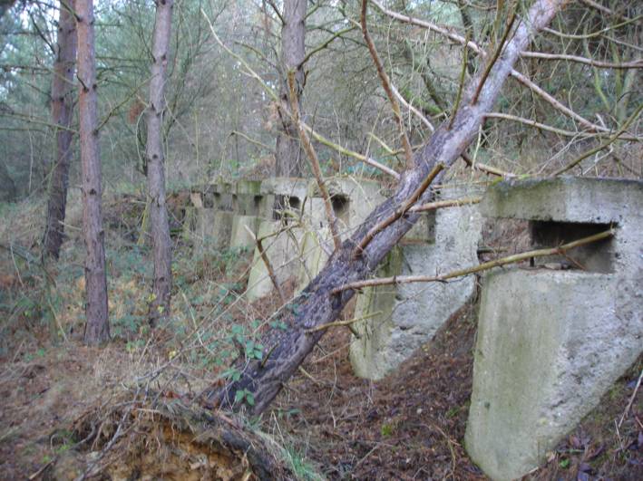 Zu dem Schuppen führen die Reste einer Art Seilbahn, die Reste der Stützmauern und der Enden sind noch erhalten: |