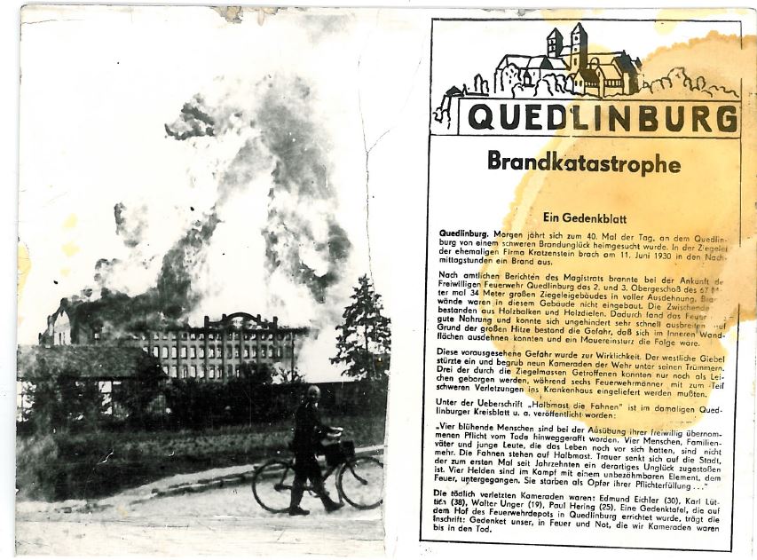 11. Juni 1930 kam es zu einer verheerenden Brandkatstrophe in der Ziegelei.