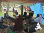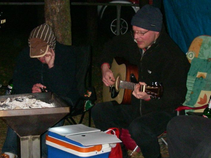 Blühender Mai 2010 – nicht wirklich! Statt Sonnenschein begrüßte uns Dannigkow mit bedecktem Himmel und fast frostigen Temperaturen. Bernies Grill hatte zum Durchheizen nicht die ausreichende Leistung, aber für's Zubereiten der reichlich vorhandenen Fleischreserven reicht er. Abgesehen von den drei ganz jugendlichen Teilnehmern ging alles seinen geregelten Gang. Eisessen gehen, Boule spielen (auf Grund Abbruchs "muss" ich wohl noch ein Jahr Champion bleiben), der Musik der wiedereröffneten Beautifulbeachbockbierbar lauschen, dummes Zeug erzählen, Musik machen und natürlich zu zahlen zu versuchen. |
