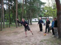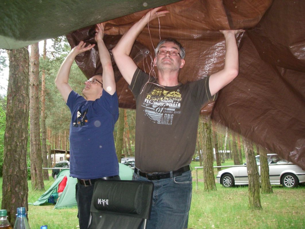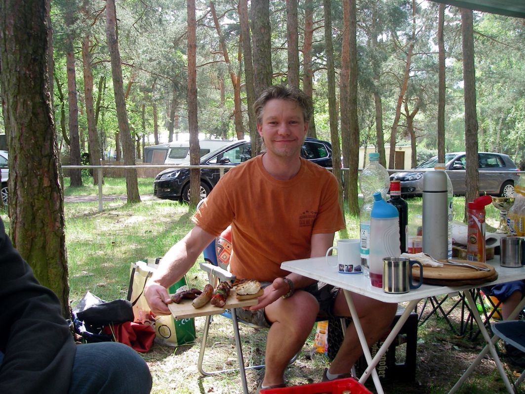 Mai 2013: Unser klassisches Ausflugsziel zum Männertag hat sich entscheidend weiterentwickelt: Wir haben es zwar schon immer geahnt, aber auf der anderen Seite des Sanitärtrakts herrschen ausgesprochen moderne und komfortable Verhältnisse. Alles ist neu – aber Duschen müssen wir deshalb trotzdem nicht. Das gemeine Publikum hat diese Weiterentwicklung noch nicht wirklich mitbekommen – sprich wir sind als Zeltler praktisch allein wie immer. Ansonsten ist eigentlich alles wie immer. Am Mittwochabend reisen alle (bis auf Wolzow) in Ruhe an und wir widmen uns mehr oder weniger tiefsinnigen Gesprächen. Bernies Grill liefert konstant gute Ergebnisse und das ein oder andere Kaltgetränk wird bei den annehmbaren Temperaturen vernichtet. „Erstaunlicherweise“ findet der gute Apfelkorn nicht wirklich gefallen. Am Donnerstag wird diese anstrengende Lebensweise fortgesetzt und mit dem obligatorischen Boule Turnier (mit internationaler Beteiligung und ausländischem Sieger) und einem Eis - Besuch am Waldcafe „Am Tiefensee“ (leicht renoviert) fortgesetzt. Im Laufe des Freitagvormittags müssen wir alle wieder aufbrechen. |