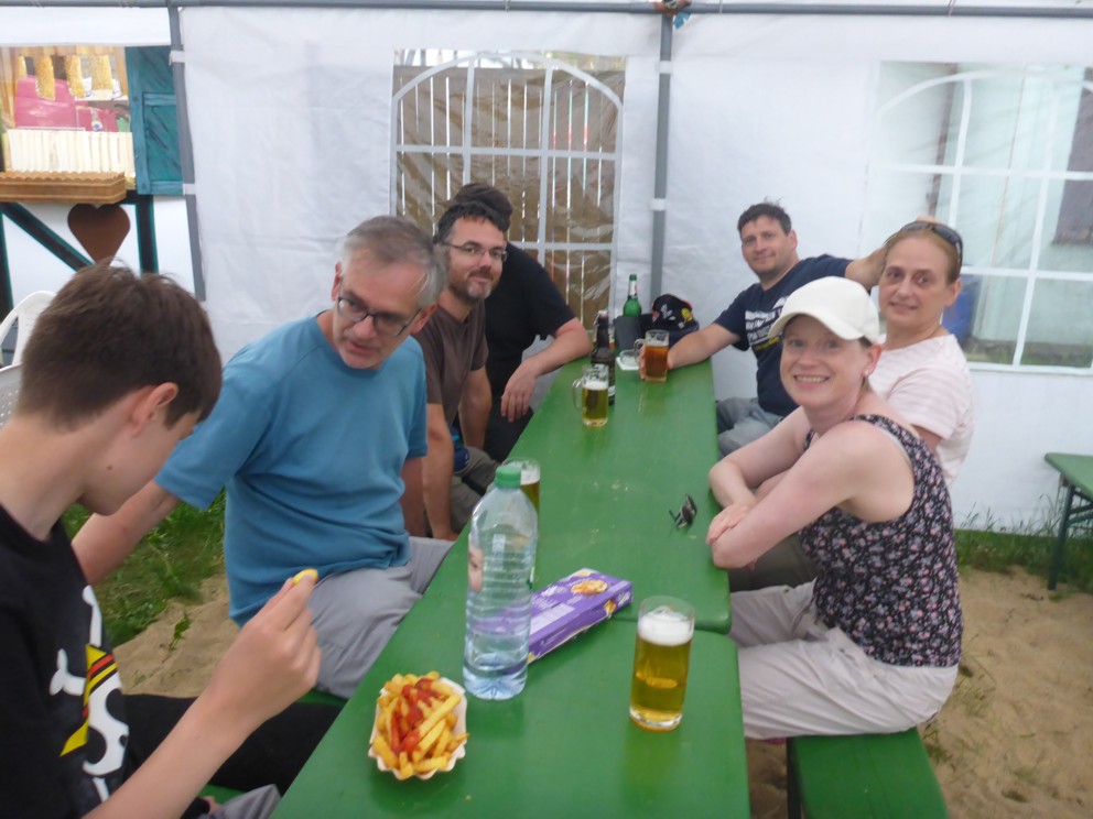 Wir sind nicht allein auf dem Platz, ein paar Mitzelter mit Auto und eine