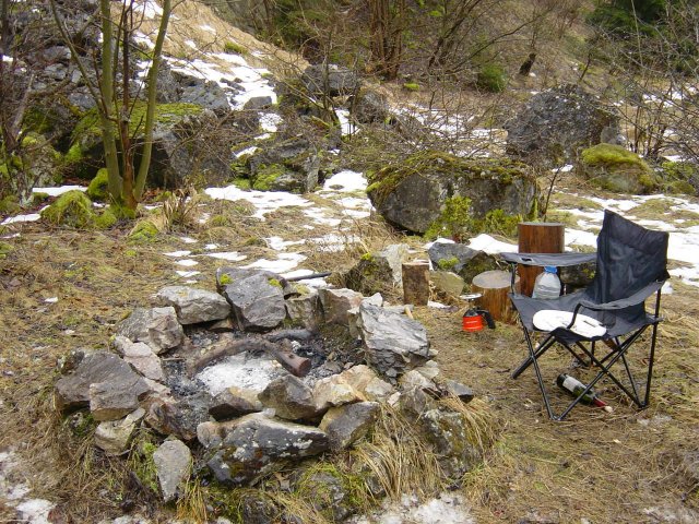 Holz diente zum Feuern. Samstagmorgen wurde die Plane vor dem aufkommenden