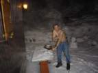 | Der Abend wurde sehr hitzig und mit + 40° C haben wir für uns einen Temperatur-Rekord beim Winterzelten, äh -hausen aufgestellt. |
