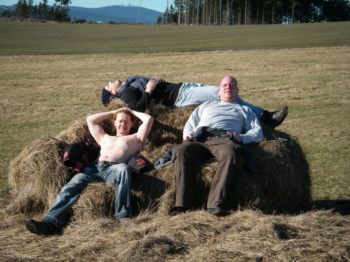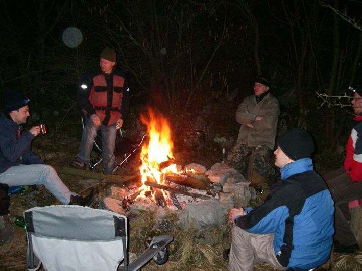 | Gegen 20:00 Uhr traf Matze als Erster ein und bereitete Platz und Feuer vor. Zweite waren die OWL'er und der Hannoveraner, vor der Bulette und der Dresdner Fraktion. Der Abend zog sich bei ausgebiegen kulturell angehauchten Diskussionen bis fast in den Morgen. Am Samstag ging es per Pedes über den Blauen See und die Reste von Kyrill zu Werners Eltern. Leider hatten wir keinen Erfolg, haben aber dafür jetzt seine Adresse. Im Deutschen Haus haben wir uns den Bauch vollgeschlagen. Dank ausreichend Feuerholz musste am Abend keiner frieren. Der Glühwein reichte und dank unermüdlichem Einsatz war auch dieses mal am nächsten Morgen noch ausreichend Glut vorhanden. |