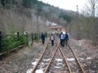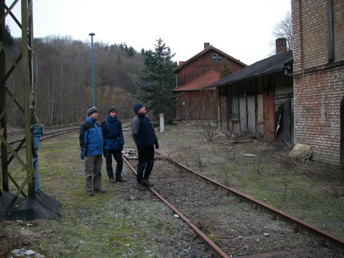 | Samstägliches Ziel war eine Runde zum Krockstein und dann über die Halden zum Höhlenort angesagt. Nach einem ausgiebigen Mittag + Kuchen/ Eis konnten wir noch die Reste eines alten RAW's inspizieren und einen echten Dampfzug bewundern. Mittlerweile fing es endlich an zu schneien. Der Abend verlief - bis auf ausgehende Glühweinreserven und mangelndes Interesse an Apfelkorn - planmäßig ;o) |