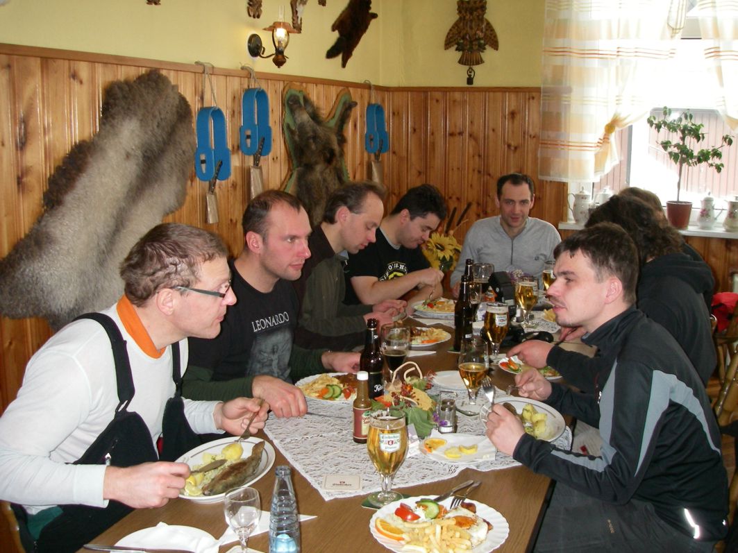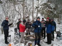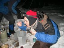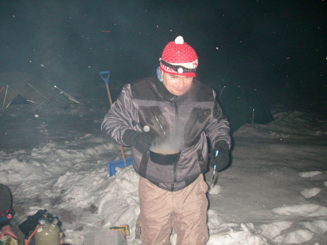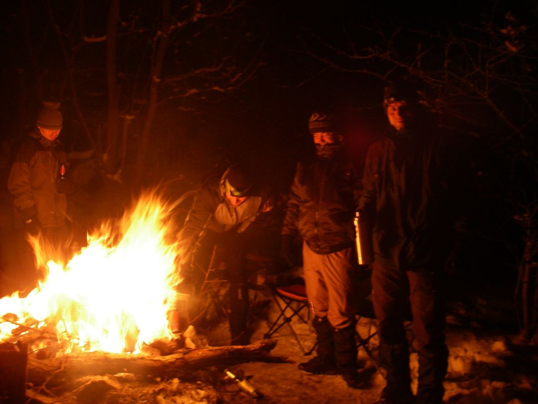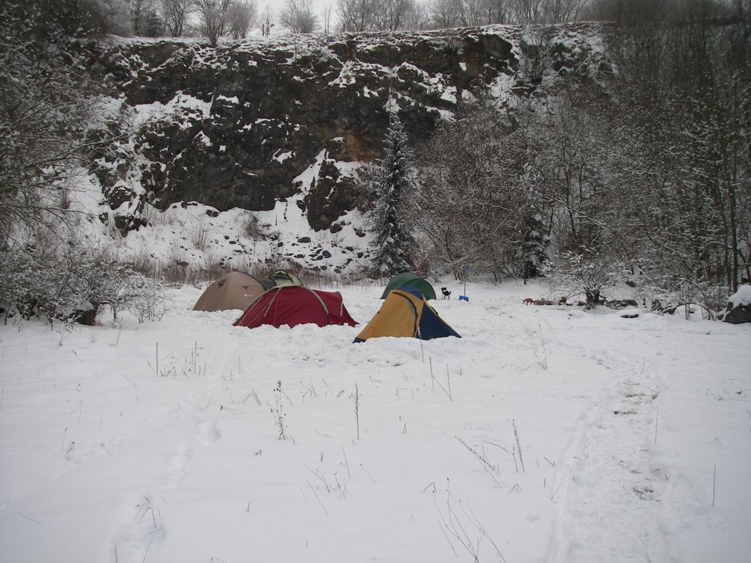 Am letzten Januarwochenende 2013 ging es mit „den alten Männern“ (O-Ton von Michas Sohnemann) zum traditionellen Winterzelten. Der Wettergott (alternativ auch der Wetterfrosch) meinte es gut mit uns, denn dieses Mal war die Welt bei knackigen zweistelligen Minustemperaturen in pulvrigen Schnee gehüllt. Nach 22 Uhr waren wir dann endlich komplett und konnte uns der weiteren inneren Durchwärmung widmen. Als bayrische Spezialität gab es Gulasch mit Spätzle und Preiselbeeren – zu der späten Stunde waren viele Bäuche allerdings schon gut gefüllt. |