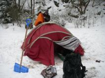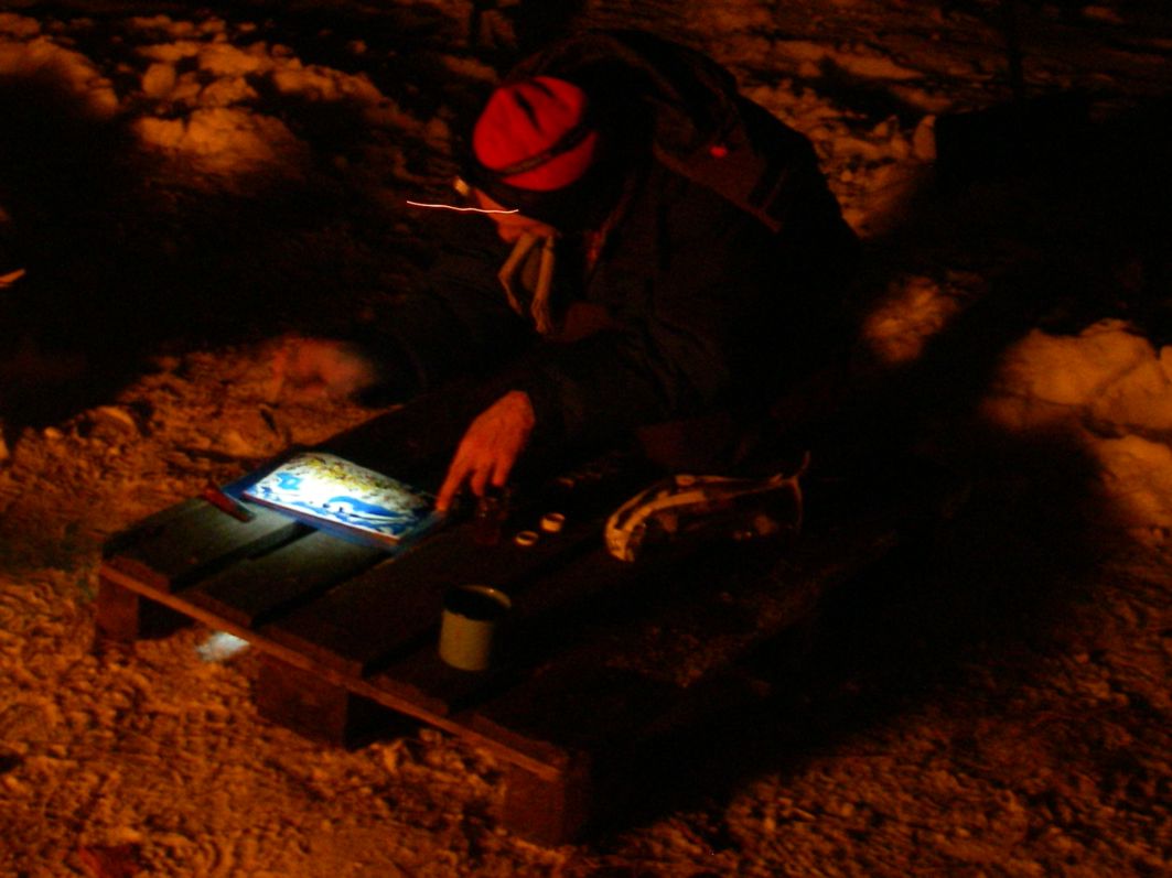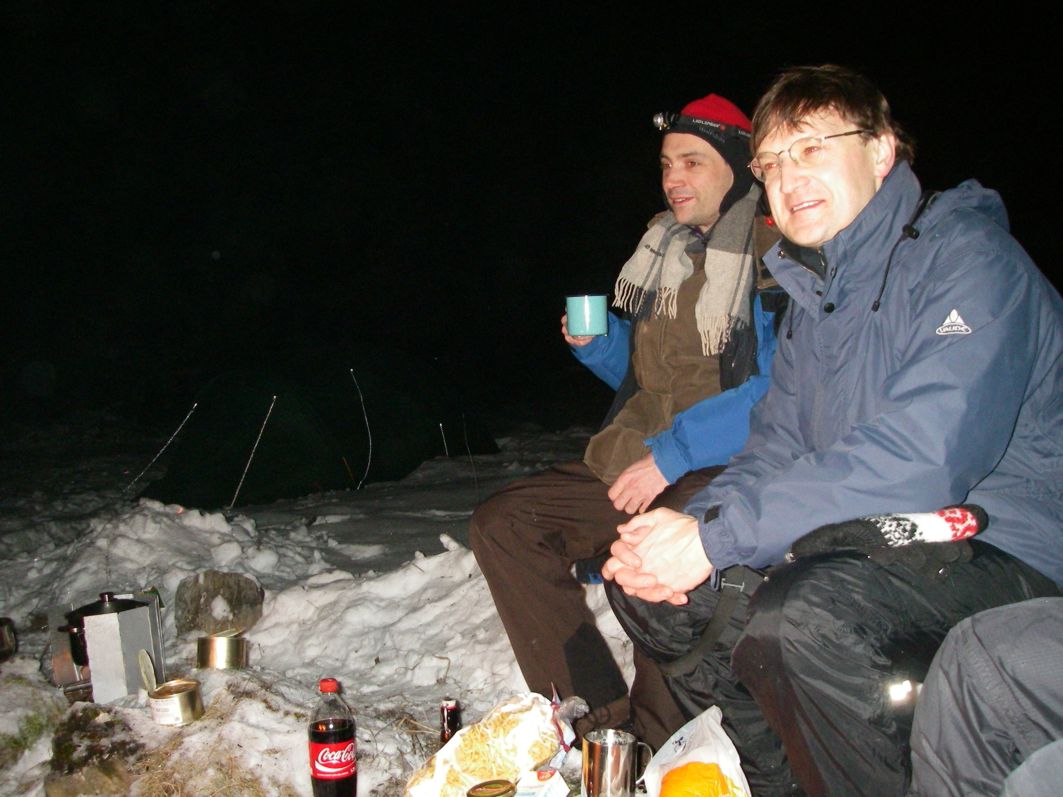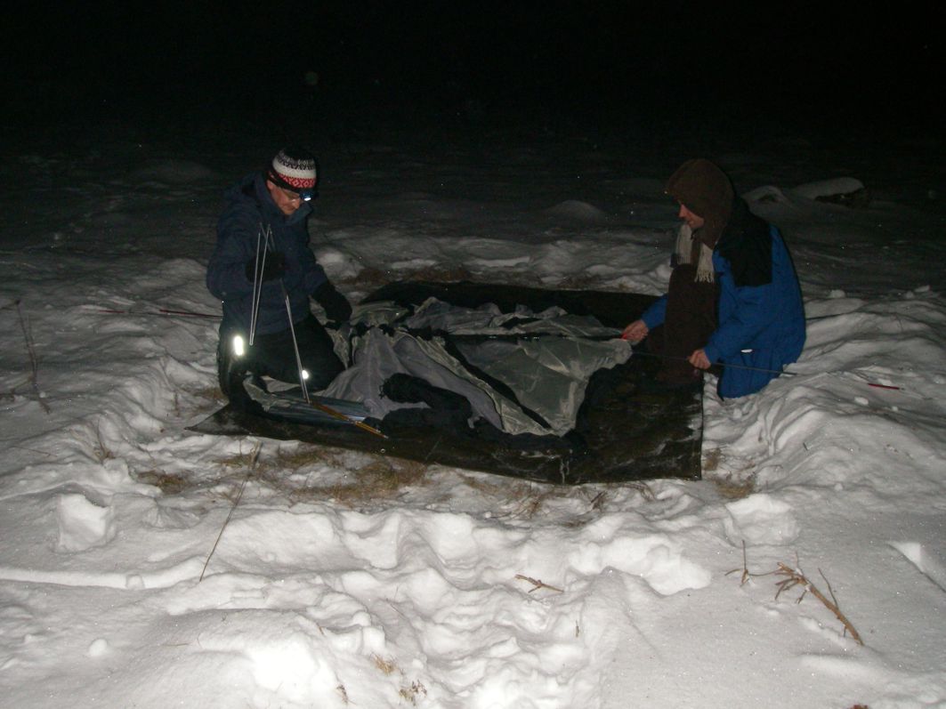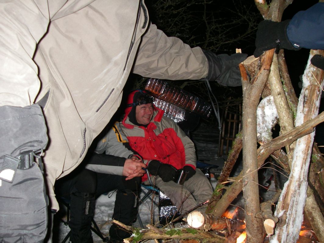 Aldizelte stehen auch ohne passende Stangen, Objektivdeckel werden überbewertet, auch Wein kann einfrieren, beim Auftauen den Wasserkanister nicht zu nah ans Feuer stellen und „Fresse“ ;o) |