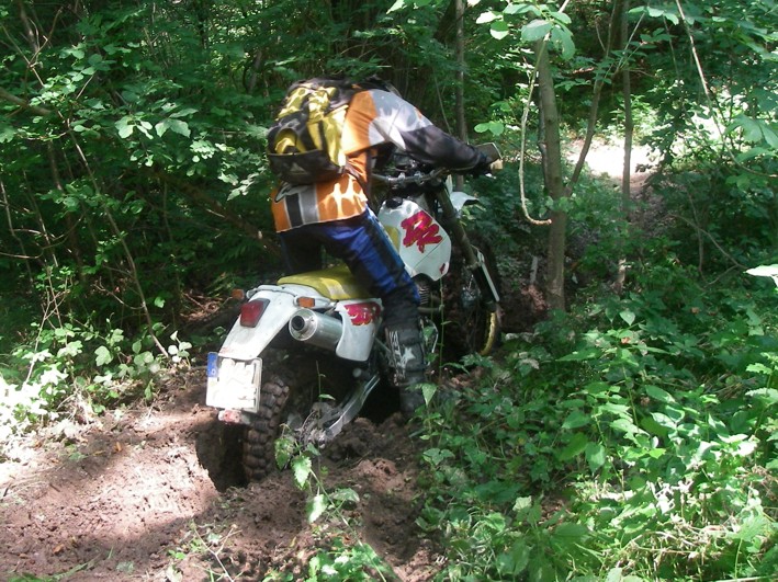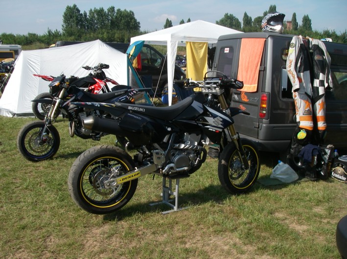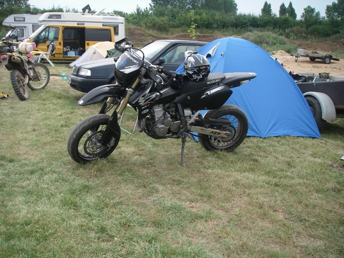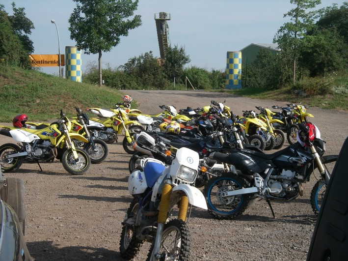 Die Supermoto- und Endurofahrer des quirligen japanischen Einzylinders haben vom 20. bis 22. Juli 2007 zum Treffen geladen. Der Harzring in Reinstedt bietet mit seiner SM - Bahn und ausreichendem Gelände die besten Voraussetzungen. Am Samstag gab es für "uns" Erdferkelfraktion eine wunderbare Ausfahrt auf echen Enduropfaden. Am Nachmittag ging es nochmal zu einer sehr staubigen Crosspiste, aber mehr Freude machten (mir) dann die weiteren Gruben in der näheren Umgebung. Pünktlich fast zum Ende der Fahrerei sorgte Regen für staubfreies, aber feuchtes Fahren. Die abendliche Party war dank guter Organisation dann eher von innen feucht ...