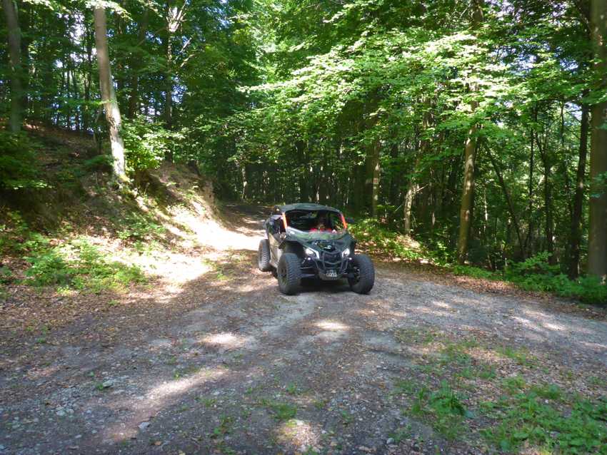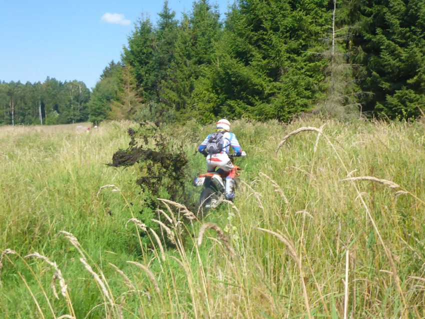 Wald- und Wiesenwegen schlenzten wir durchs Land. Der Begleittransporter