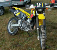 Der Verkäufer hatte die ursprünglich schwarze DRZ schon Richtung "Gelb" umlackiert, mit einem Factory - Effex/ Cemoto - Dekor versehen und mit einem kleineren Heck und kleineren Blinkern ausgerüstet. Logischerweise gab's trotzdem noch einiges zu verbessern: |