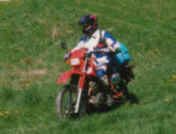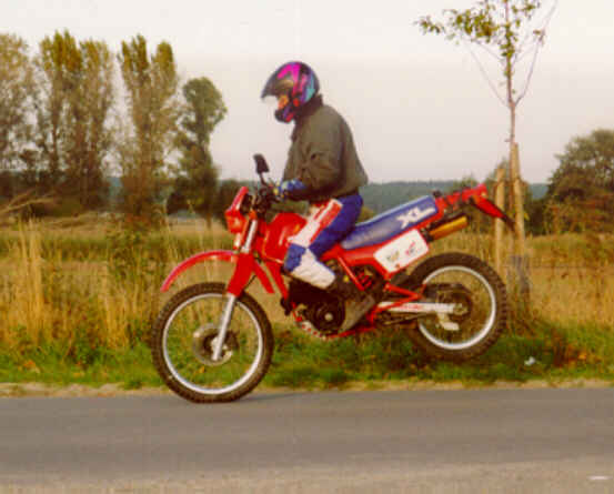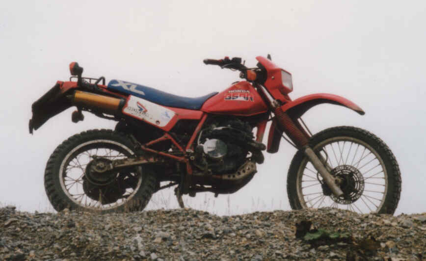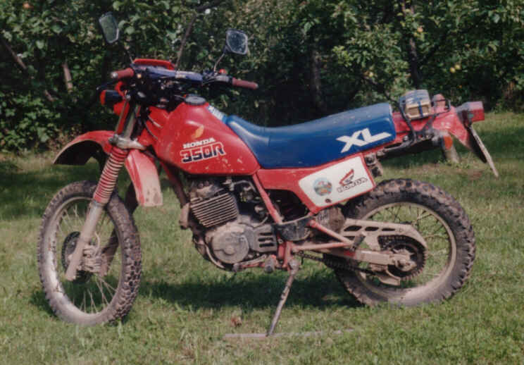 | Als nächstes folgte die erste "richtige" Enduro in Form einer Honda XL 350 R. Die XL war für einen 350' ein tolles Mopped -der Motor spritzig, der Sound dank Sebring satt und das Fahrwerk für meine Zwecke ausreichend. Einziger Wermutstropfen war die Startunwilligkeit bei tiefen Temperturen - da konnte man das Motorradanschieben gut lernen ;o) |