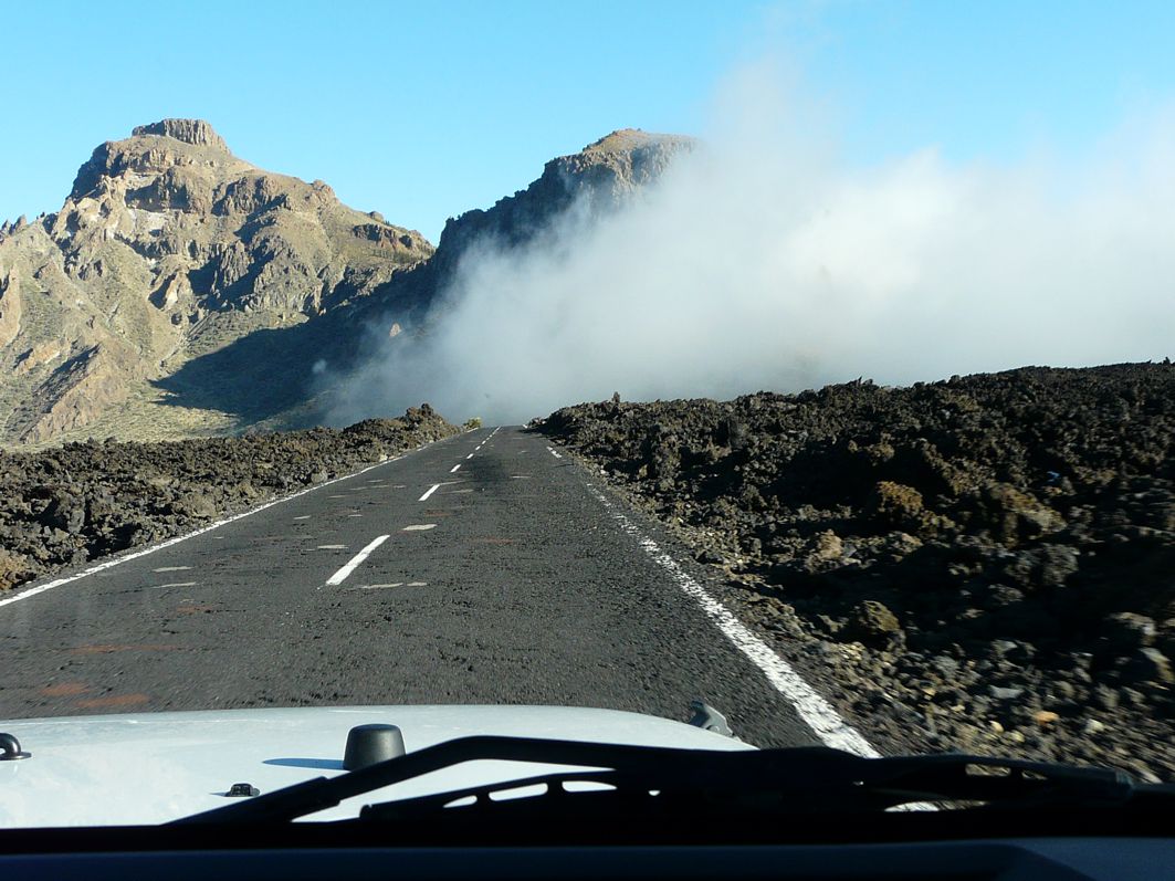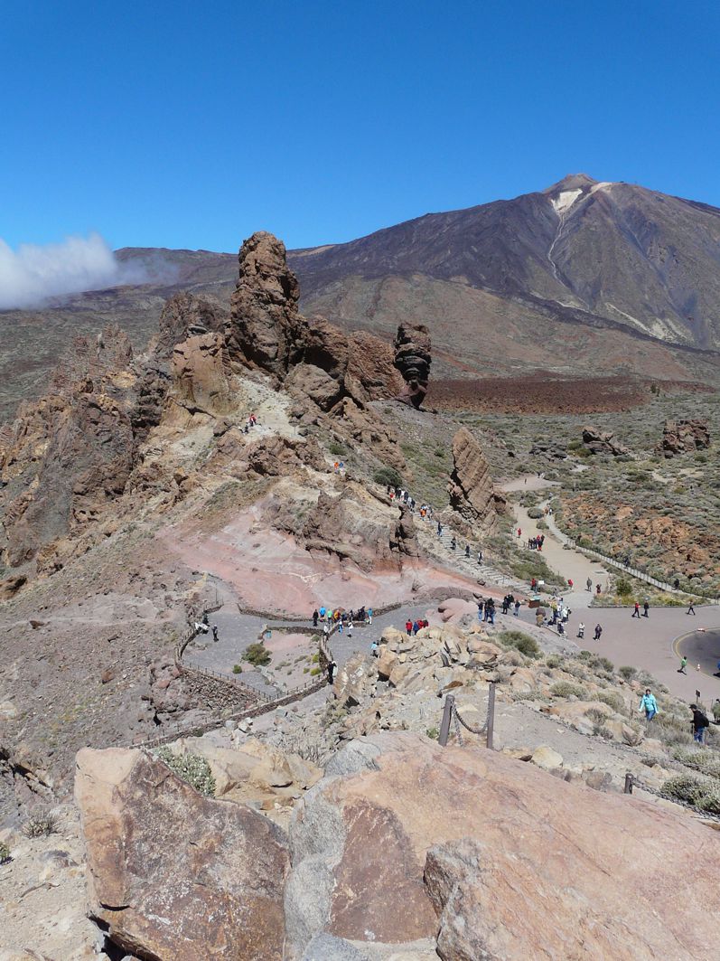 Vulkanlandschaft. Rechter Hand wacht der Teide über uns und wir schlängeln