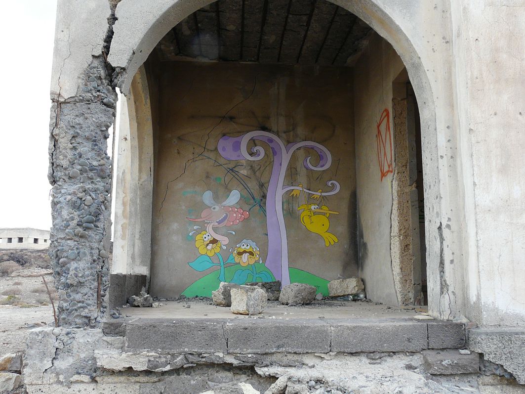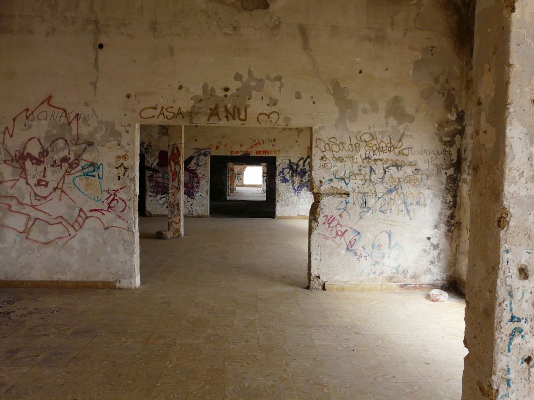 Wir durchstöbern die leeren Gebäude, bis auf den wie so häufig