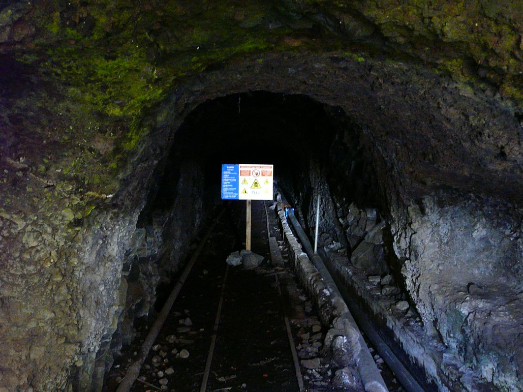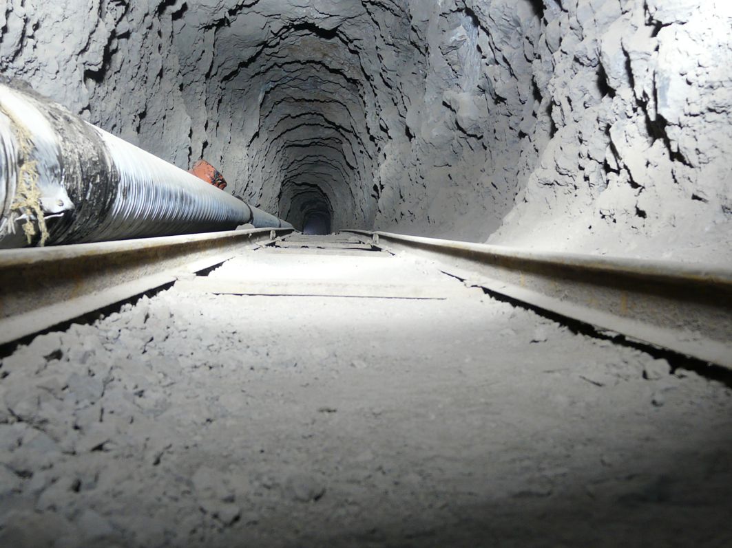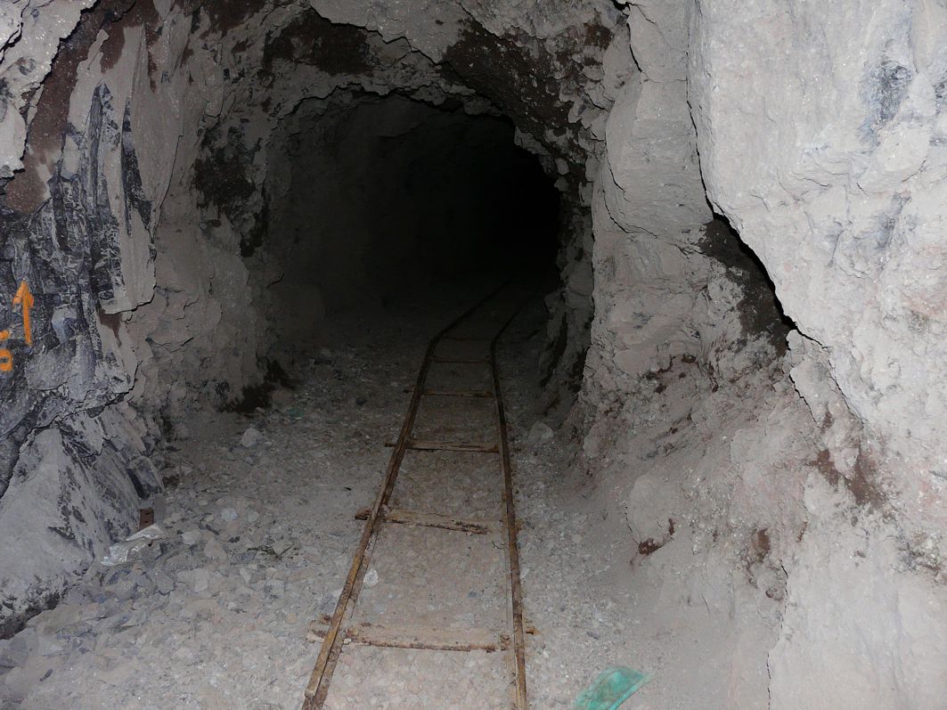 Loren und Gleise im Berginneren zeugen von der Vergangenheit.