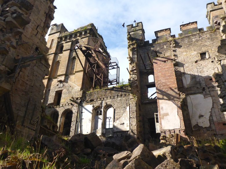 versteckt sich der ehemals prächtige Bau. Langer Leerstand und Feuer