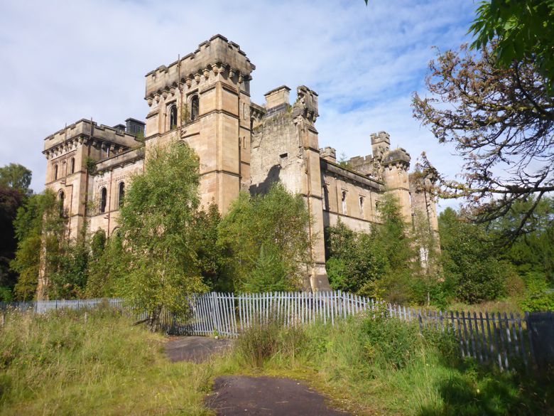 all back" das Lennox Castle als echten Lost Place. Im Wald bei Lennoxtown