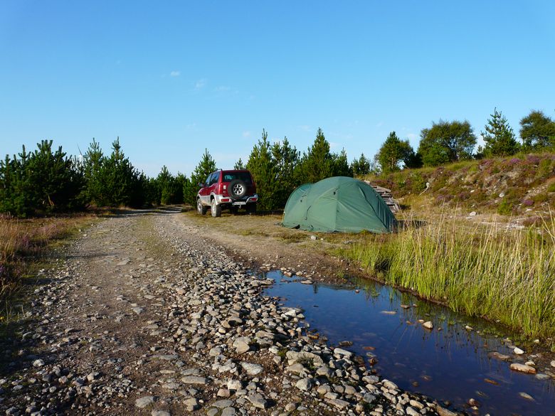Woche eigentlich zu feucht, aber wir dürfen unser Zelt auf dem etwas