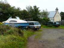 Den anschließenden Cache "Twelve old wheels" in zwei alten Militärwagen aus dem zweiten Weltkrieg finden wir nicht, wollen aber bei der speziellen Mischung aus Autoverschrotter, Bergbauhalden und verwilderten Industriebrachen auch nicht zu lange suchen. |