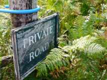 zugewachsene "Private Road" Schild - das nächste Mal passen
