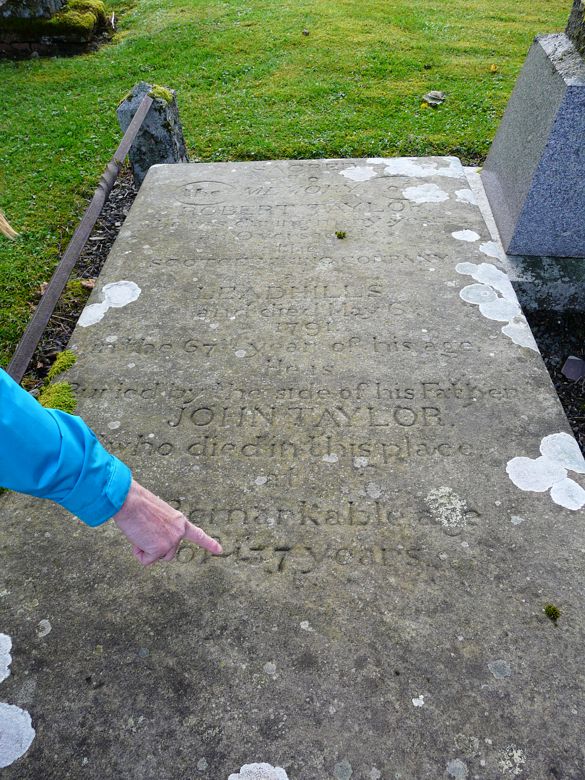 Am anderen Ortsende statten wir einer Legende einen Besuch ab. Auf dem städtischen Friedhof - wie immer mit leicht morbidem Charme - liegt John Taylor, der angeblich 138 Jahre alt geworden sein soll. Um ihn ranken sich einige interessante Geschichten (ala "hier wohnt der von Gott Vergessene"), die sein hohes Alter nicht ganz unwahrscheinlich erscheinen lassen. |