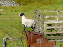 Im Nachbarort Wanlockhead liegt das "Museum of Lead Mining". Die Bergbaugeschichte sieht man der kargen Umgebung deutlich an, aber in der morgendlichen Sonne und unter kritischem Blick der wolligen Ureinwohner macht das Erkunden Spaß. Vorbei an der unter freiem Himmel stehenden Beam Engine, den alten Strecken der Grubenbahnen und allerlei Gebäudereste heben wir den "Not quite the highest cache - but...". Am Ende des Ortes kann man sogar ein wenig offroaden und ein paar gute Stellen zum Zelten ließen sich auch finden. Mittlerweile hat auch das Bergwerksmuseum geöffnet - uns begrüßt die Servicekraft vom Frühstück im Hotel - und wir schließen uns der kleinen Führung an. Der enthusiastische Führer macht aus der Besichtigung des kurzen Stollens ein Erlebnis und wir erfahren wissenswertes über das Leben in und um die Bleiminen. Auch das kleine Museum mit lustigen Installationen lohnt einen Besuch. Diese am Rande der Hauptreiseziele liegende Region war definitiv einen Abstecher wert. |
