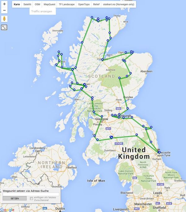 erstellten Luftlinienroute kann man unsere Rundreise durch Schottland