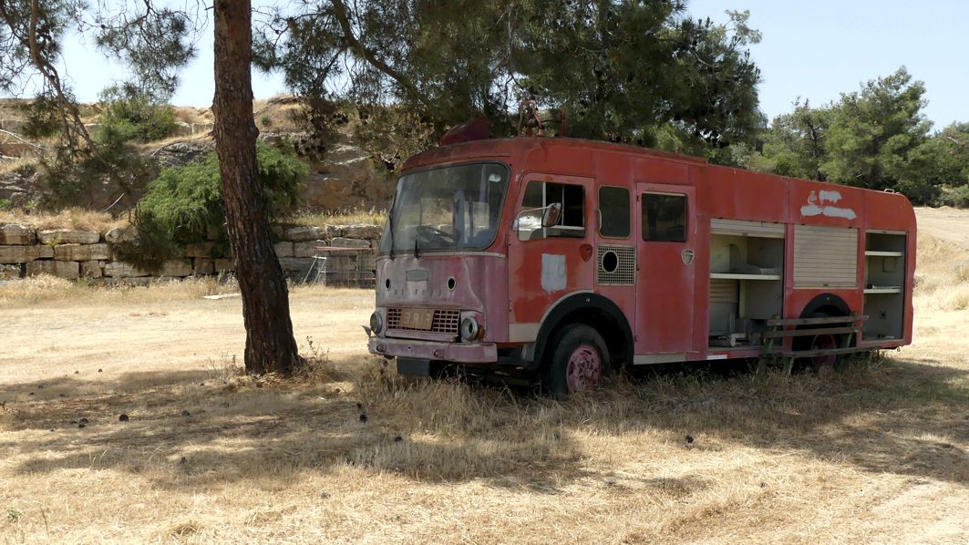 Auf die Feldbahnreste nördlich von Parekklisia wurden wir im Feldbahnforum aufmerksam. Nach der Suche bei Google Earth konnten wir die Ranch und damit die GPS Koordinaten ausfindig machen. Über kleine Feldweg, vorbei an "John Wayne und zwei Cowgirls" gelangten wir zu dem weitläufigen Gelände. Unter dem misstrauischen Blick des Wachhundes konnten wir ein paar Bilder von den Schätzchen machen. Anscheinend handelte es sich um eine ehemalige Kies- und Landwirtschaftsbahn, aber gefahren ist hier schon lange nichts mehr. Nebenbei schlummerte noch eine alte Feuerwehr vor sich hin, angesichts der Trockenheit wäre eine Einsatzbereite vielleicht besser . |