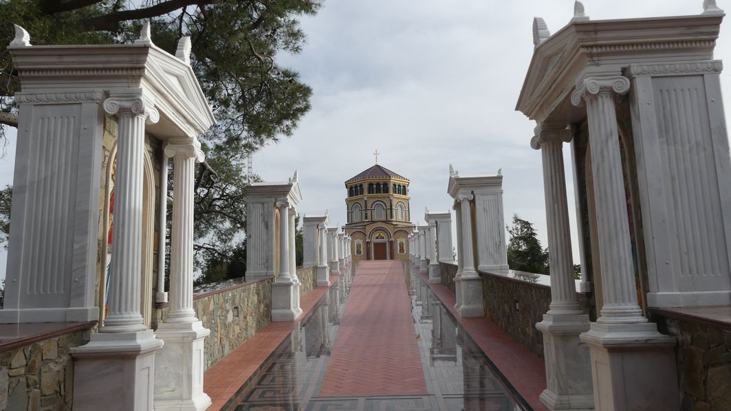 Die passenden Reisegruppen in unserem Hotel zeigen, dass die Insel kulturell so einiges zu bieten hat. Auch wir nutzen die Chance und beispielsweise bei der Tour durch das Inselinnere können wir in der einsetzenden Dämmerung nach dem "goldigen" Kloster Khyklos das oberhalb liegende Heldendenkmal allein für uns erkunden. |